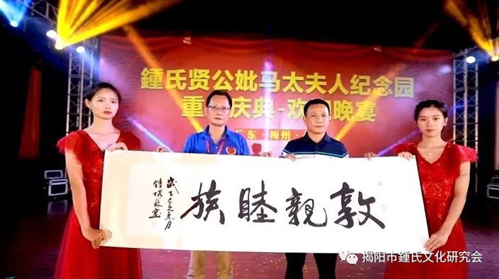 物有报本之心,人有思祖之情。金秋时节,风和日丽,今天,我们怀着万分激动的心情,相聚于美丽的客家之乡——蕉岭,共同参加马太夫人墓园重光庆典,缅怀先祖仁德,祈佑裔孙荣昌,这是鍾氏文化发展中的一件大喜事,一个里程碑!在此,我谨代表广东揭阳市鍾氏文化研究会,预祝马太夫人墓园重光庆典取得圆满成功!向百忙之中前来参加活动的各位宗长、宗亲们致以诚挚的问候和美好祝福!向组织本次庆典活动付出辛苦劳动的工作人员和宗亲们表示崇高的敬意!