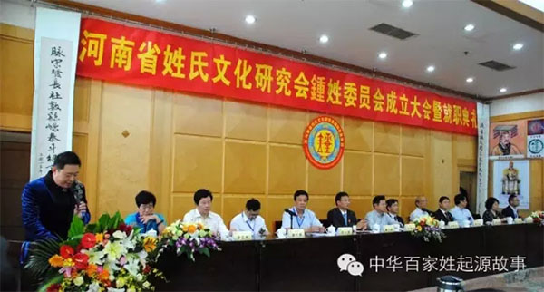 河南省姓氏文化研究會秘書長李立新宣布鍾姓委員會成立并宣讀批準文件,爲鍾姓委員會會長鍾錦光頒發榮譽證書和獎牌。随後,鍾姓委員會的各個職務依次宣布并頒發證書。