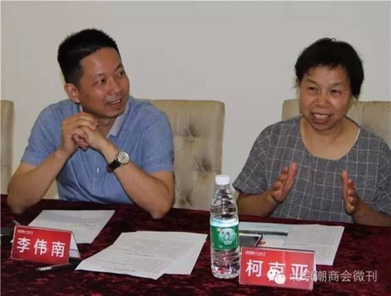 北京潮商会副会长、本月轮值会长钟潮辉,北京潮商会副会长杨铜城、张奕鹏,副会长兼常务副秘书长柯克亚,北京潮商会理事刘红卫、李伟南接待了代表团一行,随后双方进行了座谈会。