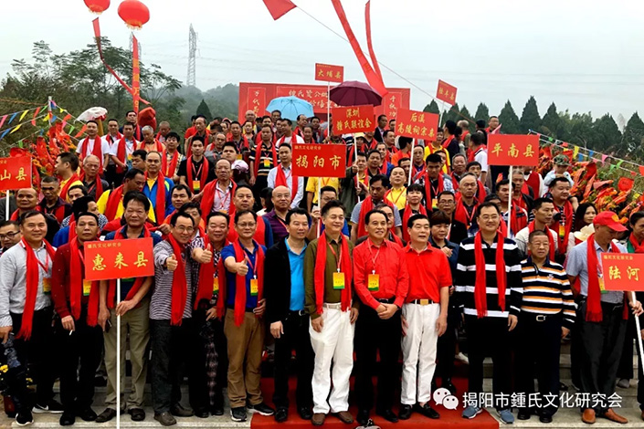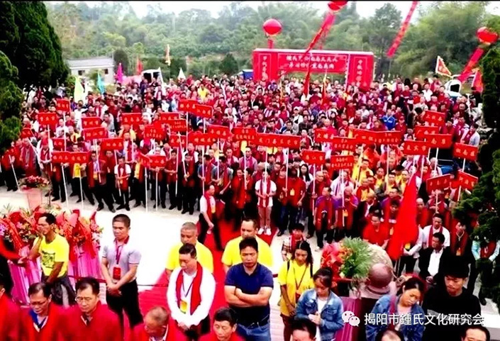 揭阳市钟氏文化研究会宗亲代表团到达广东省梅州市蕉岭县参加钟氏贤公妣马太夫人墓园重光庆典活动,参加的有来自世界各地的钟氏族人,可谓人山人海,体现了钟氏族人团结一致、感念先祖恩德之情!