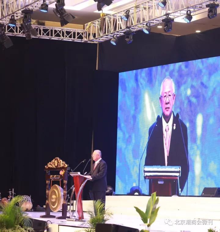 本届年会大会主席、印尼潮州总会理事长曾国奎发表了开幕词。他指出,在这中秋佳节之际,世界潮人共聚一堂,共谋发展,为此感到温暖。印度尼西亚有一千多个岛屿,自然资源丰富,是海上丝绸之路的必经之地,他希望大家抓住发展机遇,来印尼投资,赚钱。