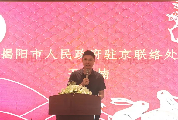 揭阳市人民政府驻京联络处王俊楠讲话,向在京乡亲致以节日问候,并在活动中播放揭阳城市宣传片,向乡亲们介绍揭阳的城市发展规划和发展态势。
